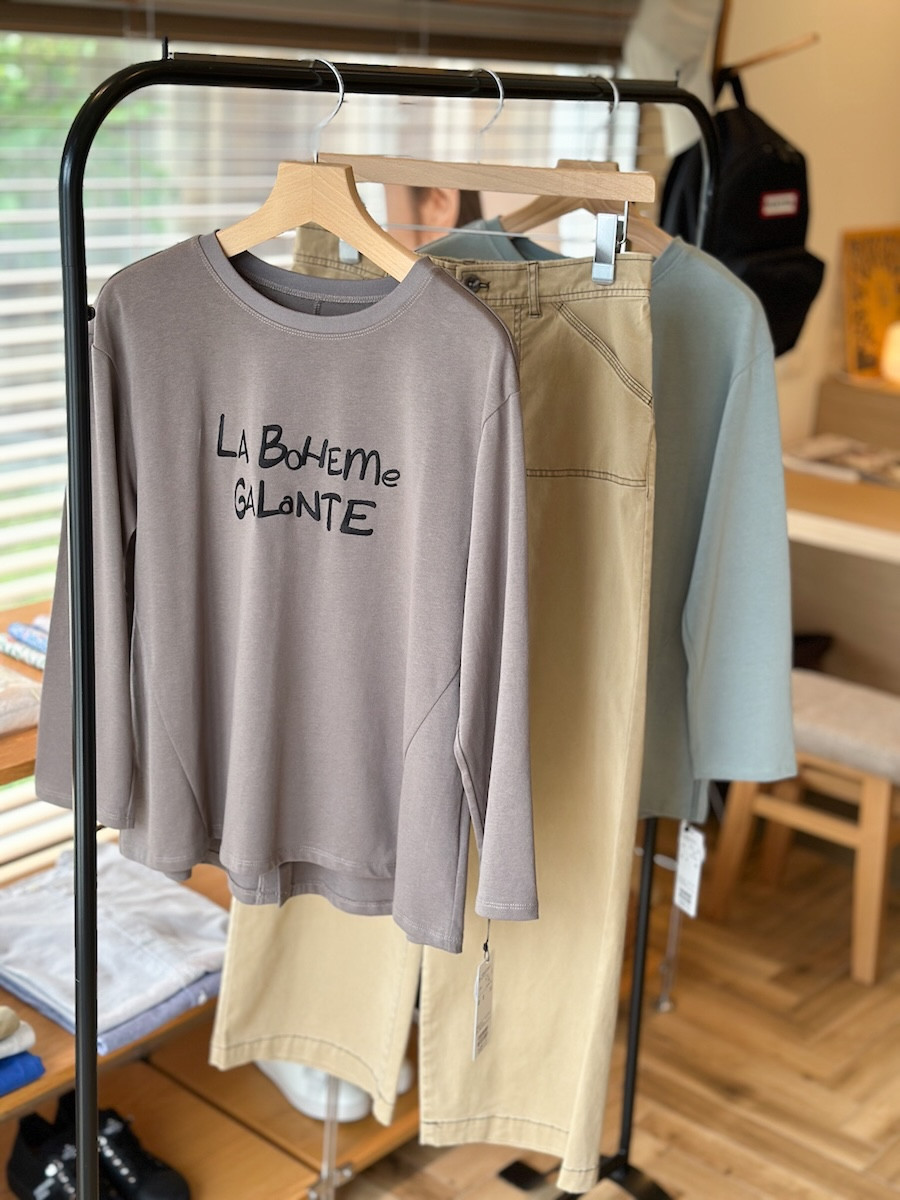 素材違いの切り替えのあるスカートは、引き紐で裾が絞れる仕様(ドローストリング仕様)で、その日のスタイリングやさまざまな体型に合わせて「サイズや丈を調整」したり、ふんわりシルエットにしたりできます♪☺️