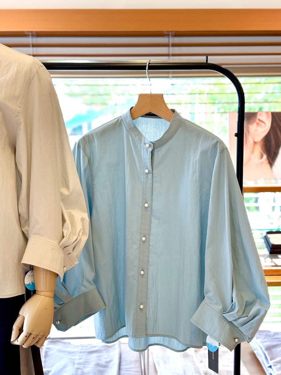 綿素材92%ですが軽い素材で、前を留めても開けてもコーディネートして頂けます。パールのボタンも素敵です💓☺️ また少しだけ後ろが長めなので、パンツでもスカートでも合わせていただけます。どうぞご覧くださいませ(^^)