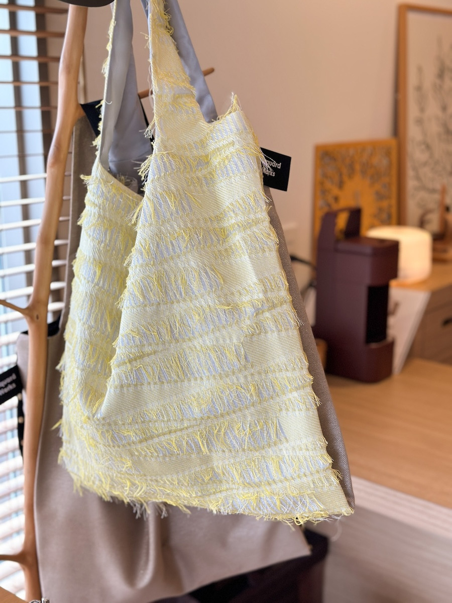 そんな春の入り口に似合う、やさしいイエローのバッグ。 ジャカード織りの生地の表情と軽やかさが、これからの季節に似合います♪